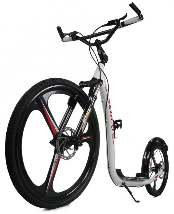 Koloběžka dominuje zejména v městské a silniční dopravě. Díky 26-ti palcovému přednímu kolu zvládnete i méně příznivý povrch, případně nerovné a problematičtější cesty.